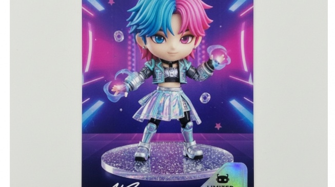Hasil miniatur AI dapat diubah menjadi photocard fisik yang otentik dan dicetak layaknya merchandise resmi.